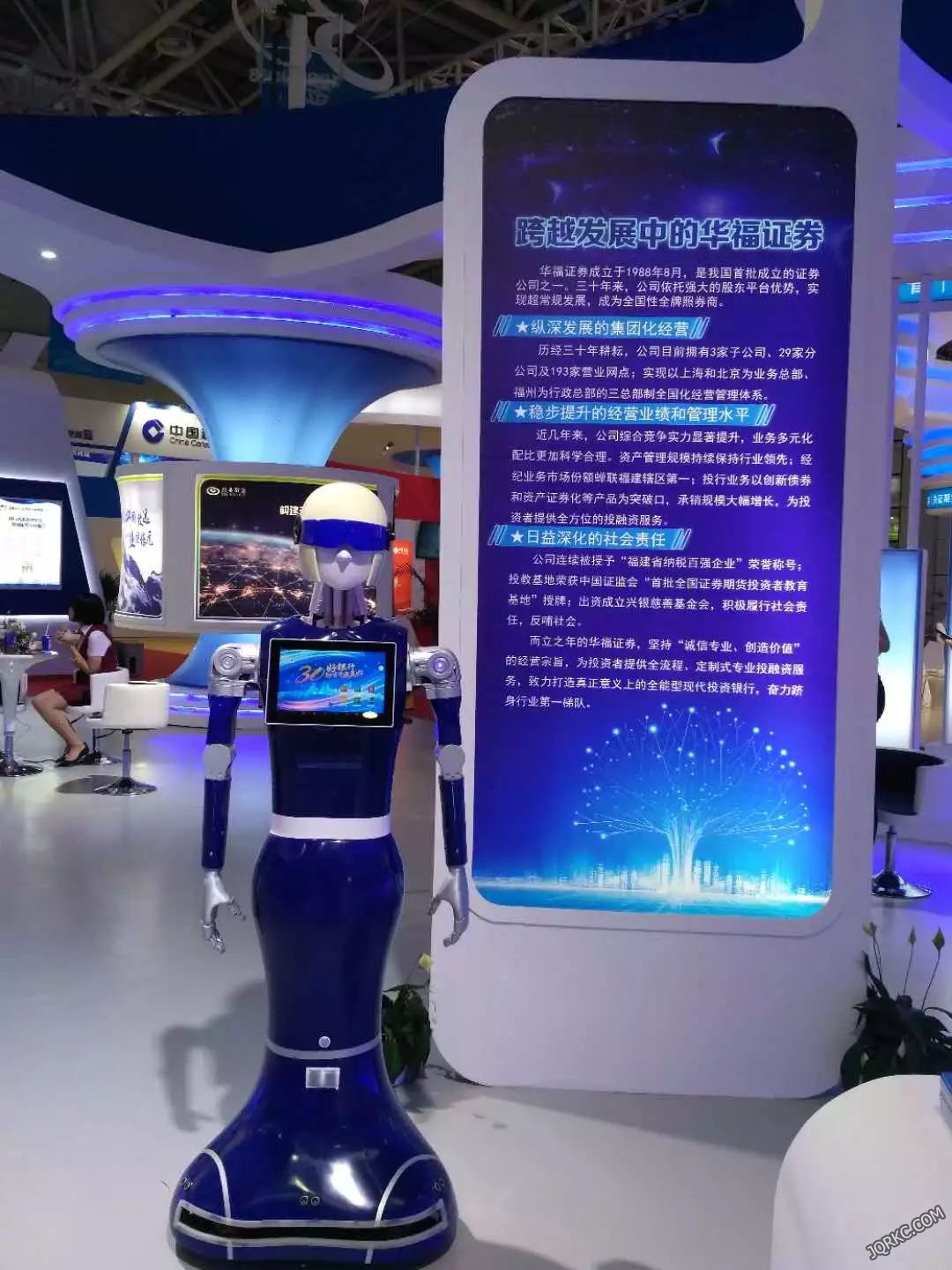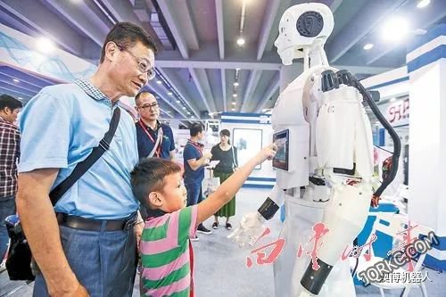 圖為澳博服務(wù)機(jī)器人傻強(qiáng)在展會使用