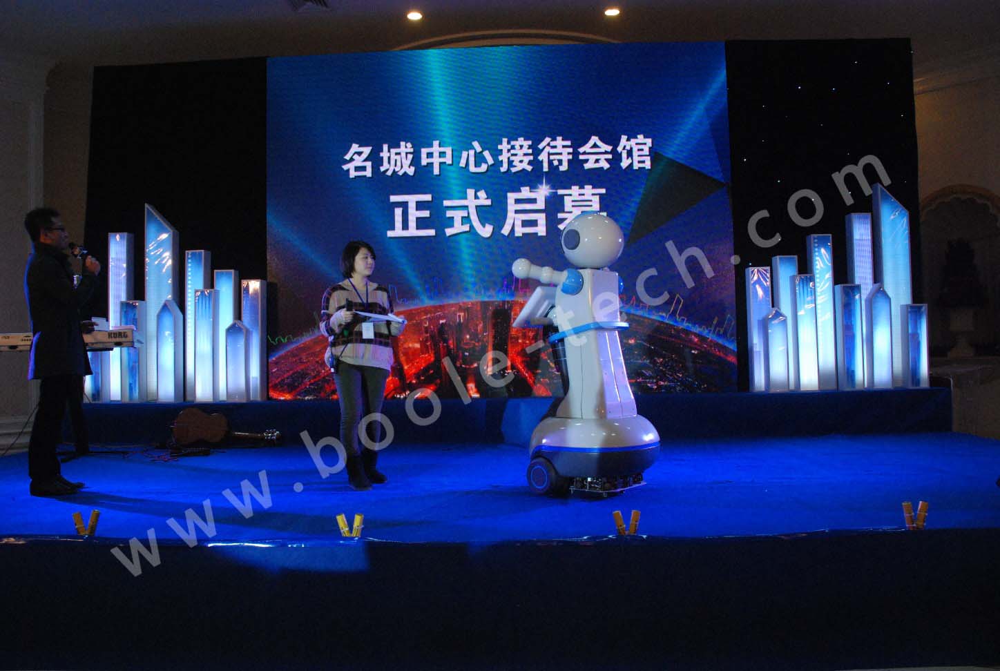 2013112號,福州東方名城中心地產(chǎn)招商儀式啟動,東方名城地產(chǎn)總裁與太空迎賓機器人互動揭開開幕式!
