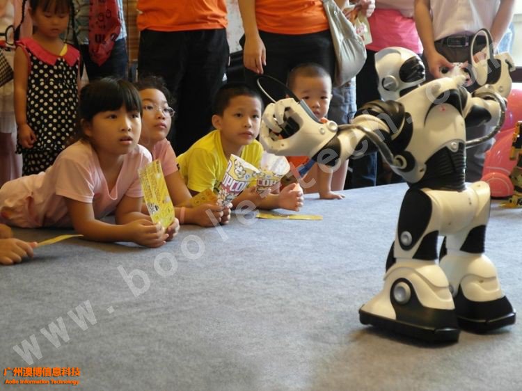 據操控技術人員介紹,智能人形機器人是利用人性化的外表設計, 有數十個自由度,近百多個傳感器,機載電腦,集仿生技術、智能控制、視覺檢測、語音識別等技術。具備有一定程度的人工智能和一定程度的情感智商,能夠和人親切地互動。而這些機器人,也可作為小朋友生活中的伙伴。