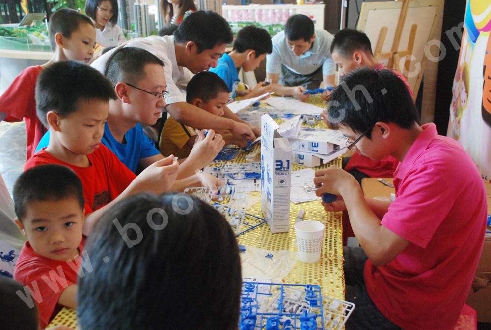 除了機(jī)器人大跳江南style外,現(xiàn)場還設(shè)立了DIY互動(dòng)區(qū),游客們可以親手組裝機(jī)器人,體驗(yàn)歡樂有趣的過程,把組裝好的機(jī)器人帶回家,孩子們都顯得特別有成就感。