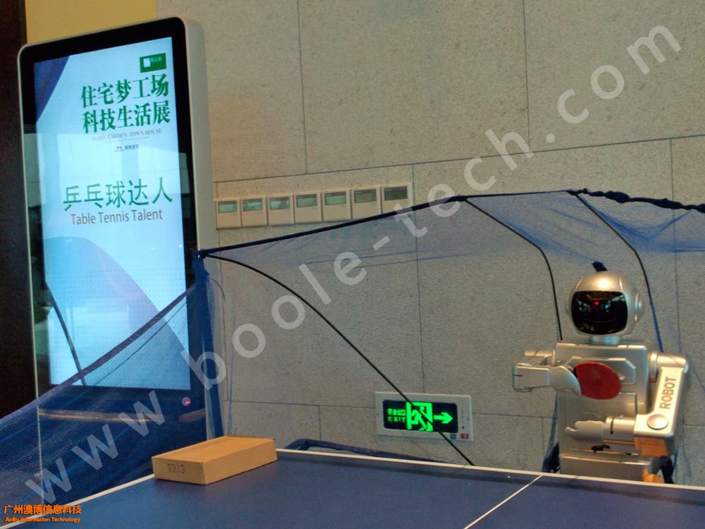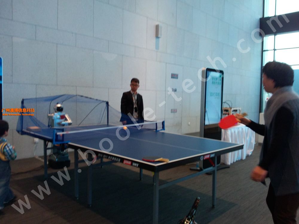 接著是機器人互動區,這是一款能打乒乓球的機器人,可通過調節控制乒乓球機器人發球的速度和角度。